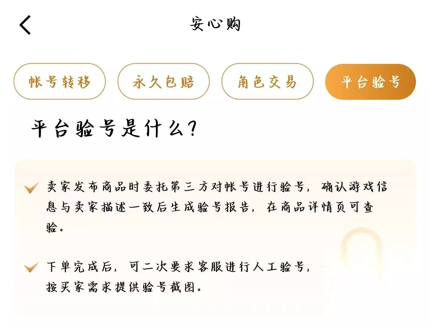 【交易猫】最新版下载 点击下载 交易猫是一款以安全而出名的游戏交易APP,不收取第三方的任何费用,有着独一无二的安心购服务,是其他很多平台所不能比拟的。且平台支持第三方检验账号,确认游戏账号信息与卖家所说一致,杜绝挂羊头卖狗肉的行为,且购买之后可以二次验证,为我们玩家在购买账号时无疑是打了一针强心针。