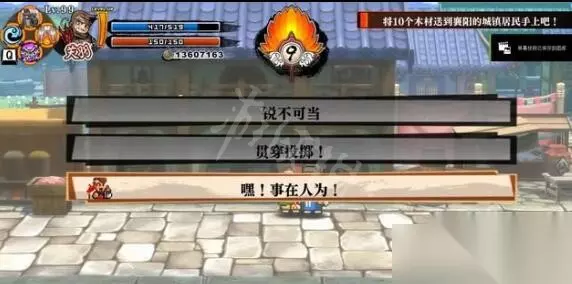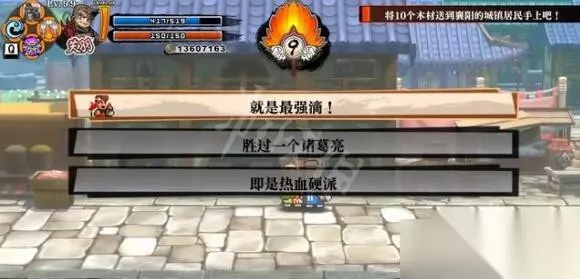 依照“就是最强”、“事在人为”、“兴汉室”的顺序即可完成,提高15点名声,选错任意一项都会降低名声。