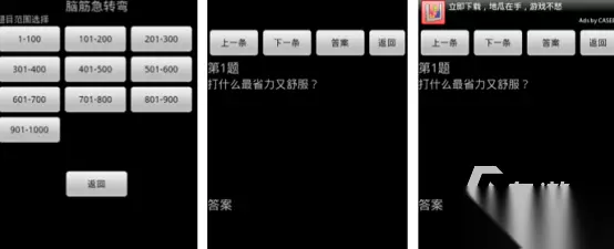 整合经典益智范式,包括华容道、叠消逻辑、数字重组等。华容道模块提供3×3至9×9共七档难度,初始布局完全随机生成,目标为将打乱数字按升序排列至指定位置,空白格作为移动媒介。算法确保每局解法唯一且路径最优。 手机扫码下载233乐园APP预约 预约订阅最新动态 优先233乐园APP下载 10、《脑筋急转弯》