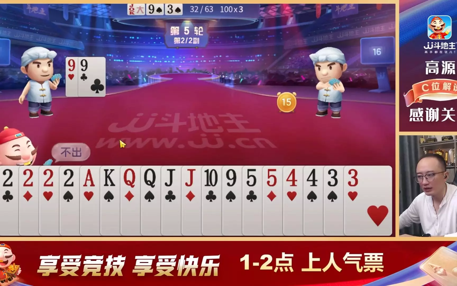 这是高源的JJ斗地主解说内容,展示了JJ斗地主的对局过程,高源以趣味的“嘴法”解说出牌思路与对局局势,分享斗地主的出牌技巧。