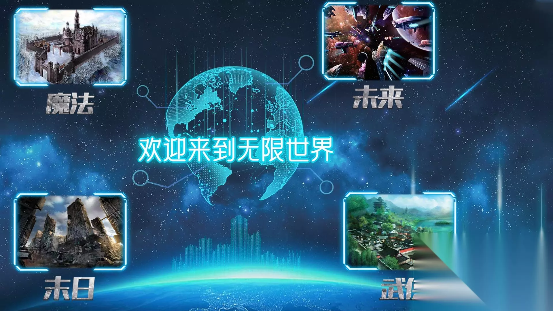 【不限时空“多元宇宙”】《无限世界》设置四个时空分别是:东方武侠世界、西方奇幻全世界、未来星际全世界、末日辐射世界。可以在四个时空中来回穿梭不受限制,其中包含的元素更是多达百余种,未来世界的机甲、十恶不赦的女巫、行侠仗义的侠客、存活着古世纪的巨龙。不限时空不限场景甚至不限想象,无限这两个字在游戏中真真切切地体现出来所有设定,把无限流与游戏相结合。