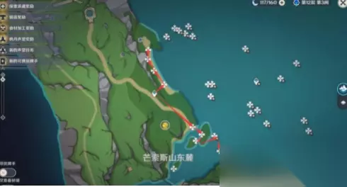 3、在【芒索斯山东麓】的海里也可以看到幽光星星,共有18个,如图所示。
