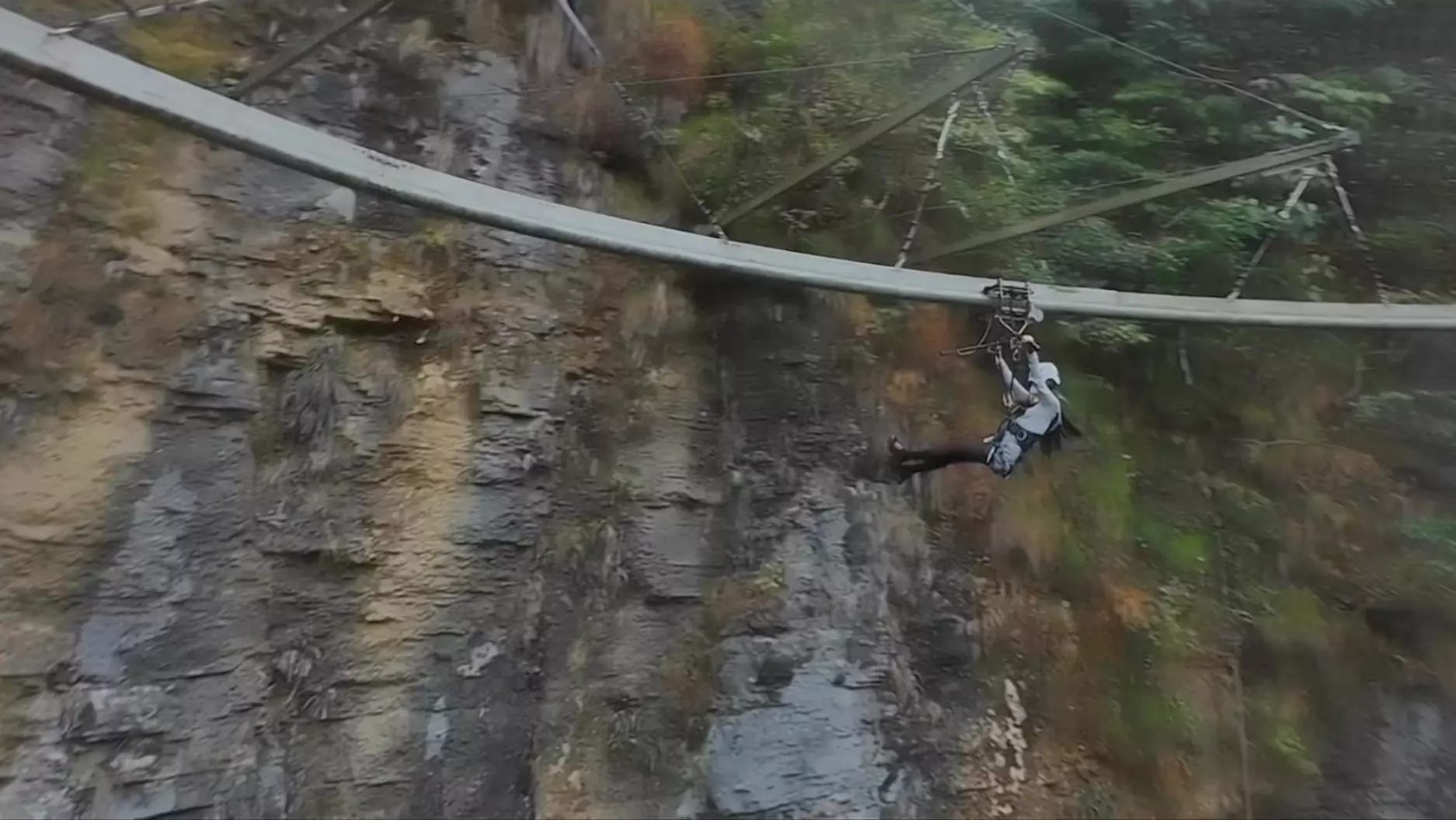 这是现实版的神庙逃亡式自行车骑行,骑行者在临海的狭窄轨道石阶、碎石坡等复杂地形速降,惊险刺激,仿佛置身游戏场景,展现了极限自行车骑行的独特魅力。