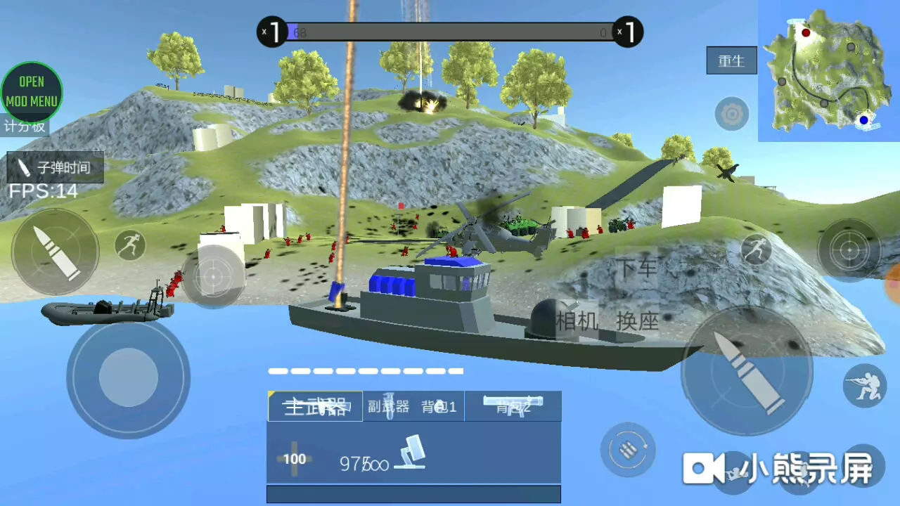 这是一篇关于军事类游戏《战地模拟器》的分享帖,展示了该游戏的加载界面、对局设置界面以及海战对局画面,该游戏有积分模式等玩法,玩家可体验载具作战等军事对战内容。