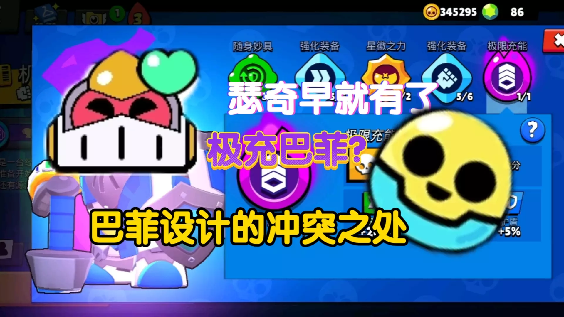 这是一期《荒野乱斗》相关视频,视频介绍了游戏里没用的极限充能,展示了“高温分解”“蛛满为患”等极限充能的效果,还和观众互动征集下期视频内容。