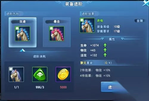(装备) 2. 装备进阶 装备有等级跟进阶两个提升属性的方式,进阶装备依次为白-绿-蓝-紫-橙-黄,满级后的装备可进阶到下一阶段,进阶装备需要进阶满级装备、进阶卷轴、金币。