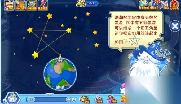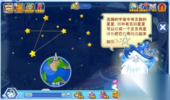 【攻略大全】 洛克王国世界占星台五角星连线怎么过 1、首先,玩家务必要抵达占星台,接着去点击那个如同下面图示所展示的图标。