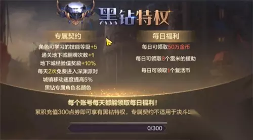 首先黑钻的价格就是【30元】,经过测试,在无黑钻的情况下,累计充值30元,便能获得黑钻身份。持续天数为30天,也就是一个月左右。 黑钻奖励内容:除了充值30元的那300点券之外,身份有效期内,每日可领取2000泰拉,累计三十天下来就是60000泰拉。并且还有其他的金币等材料,综合性价比很高。 总而言之,想要开通黑钻,必须充值30元。如果你是零氪党,亦或是六元首充党,自然是无法激活黑钻的。大家可以将其理解为一张自动激活的月卡,钱充够30自然就有。(PS:注意这是正常点券充值,不包括特惠礼包之类的氪金项目) DNF手游攻略大全 内测激活码 公测时间爆料 职业加点大全 韩服安装教程 职业大全 转职加点 深渊副本 附魔大全 NPC汇总 宠物大全 新手攻略 材料价格