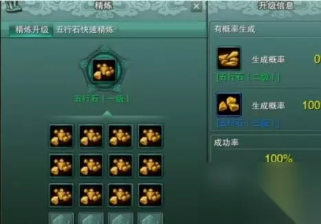 五级五行石: 使用一个三级五行石作为被合成的对象,添加11个三级五行石,这样成功率是能达到97%的,运气不好只能合成四级五行石。 六级五行石: 使用一个司机五行石作为被合成的对象,添加11个四级五行石,成功率为100%。
