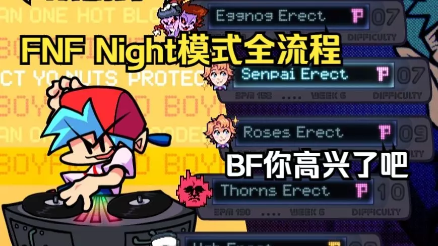 这是一篇关于《Friday Night Funkin'》(简称FNF)的内容,展示了FUNKADELIX模组的全流程演示,所有曲目都带有歌词,呈现了游戏里的说唱对战玩法。