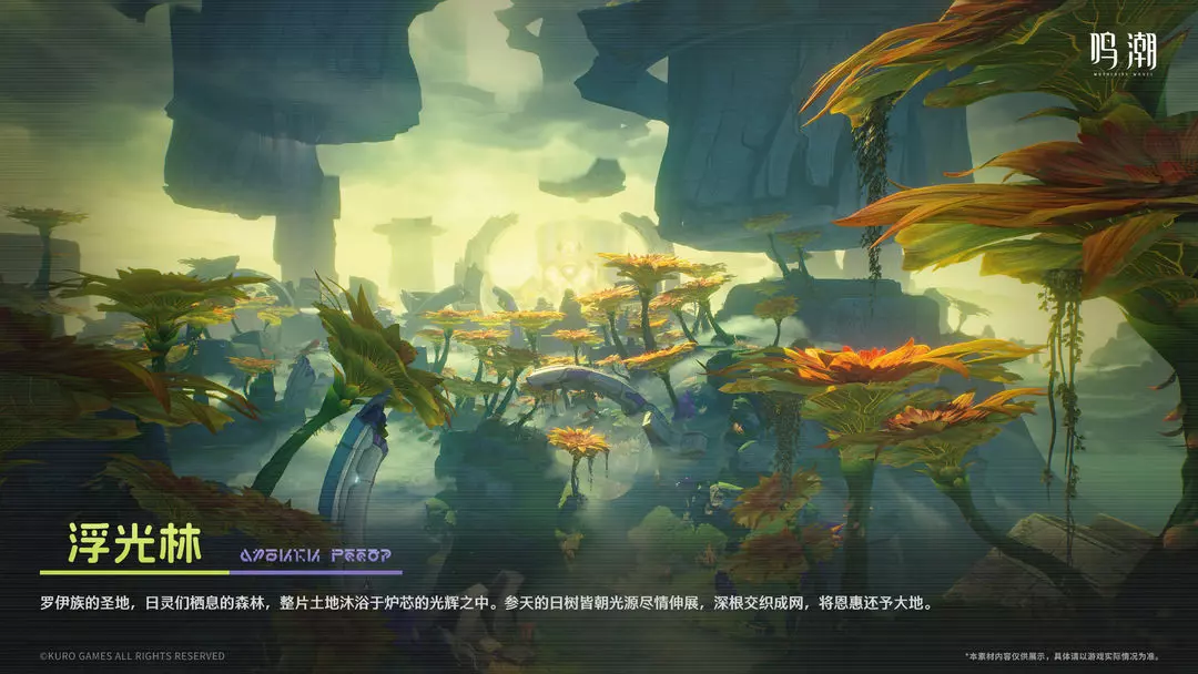 罗伊族的圣地,日灵们栖息的森林,整片土地沐浴于炉芯的光辉之中。参天的日树皆朝光源尽情伸展,深根交织成网,将恩惠还予大地。