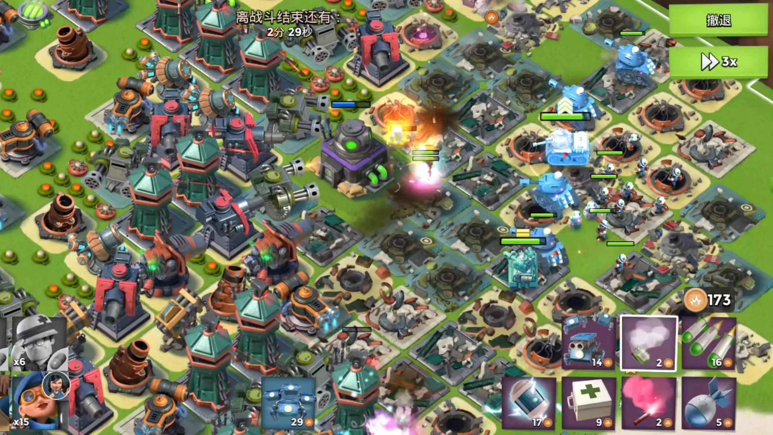 这是策略游戏《海岛奇兵》的实战内容,展示了坦克队长与鸭子队长的战斗表现,坦克队长拥有隐匿行动、战术撤退等技能,二者在实战中展现出了恐怖的输出能力。
