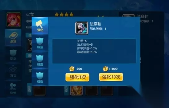 1.顶阶装备才可以进行强化 2.强化后的装备属性会有一定的提升 3.强化只花费金币,每次强化使装备提升1级,提供强化1次和强化10次两种方式 4.装备强化等级不可高于召唤师等级 5.强化功能包括‘强化’‘锻造’‘精炼’三种方式,此文档只做‘强化’ 6.锻造-消耗材料提升装备品质(白绿蓝紫橙红金) 7.精炼-消耗精炼材料给装备增加额外随机属性