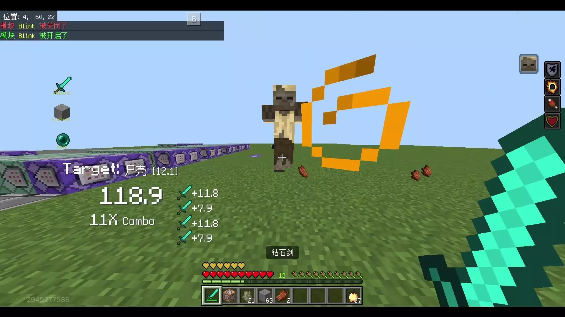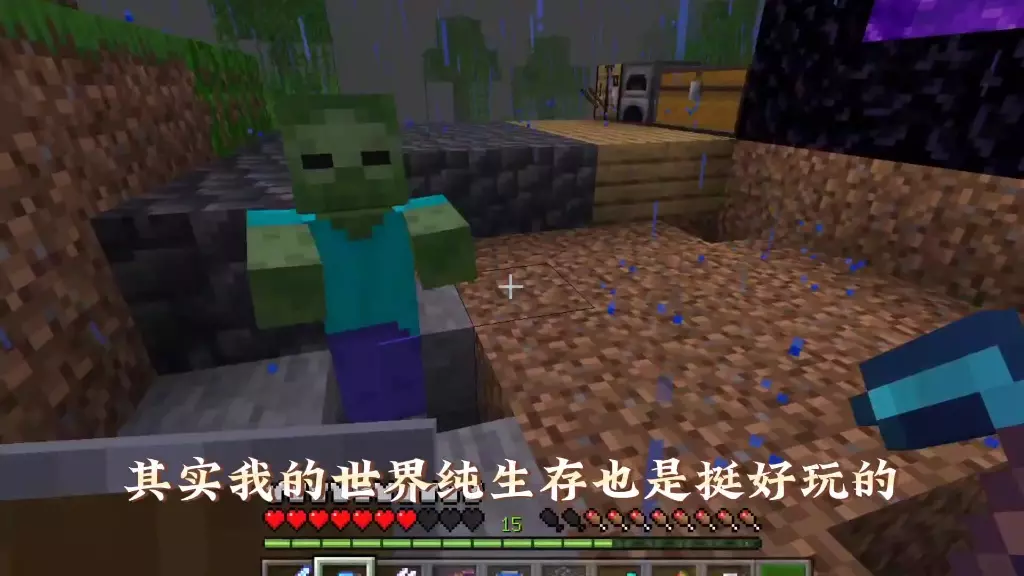 这是《我的世界》原版最高难度生存系列的第十三期内容,展示了玩家在游戏里挖掘资源、展示带有强力附魔的钻石剑等装备,还探索了下界区域,呈现了高难度生存的游戏过程。