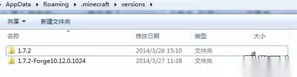 3、我们不建议将mod文件直接放入放入1.7.2文件夹中的1.7.2.jar,因为新的Minecraft启动器会自动重新下载纯净版。因此,我们需要创建一个新的 配置文件(版本),复制粘贴原版1.7.2文件夹,重命名文件夹以区分原版,这里我们命名为mod。