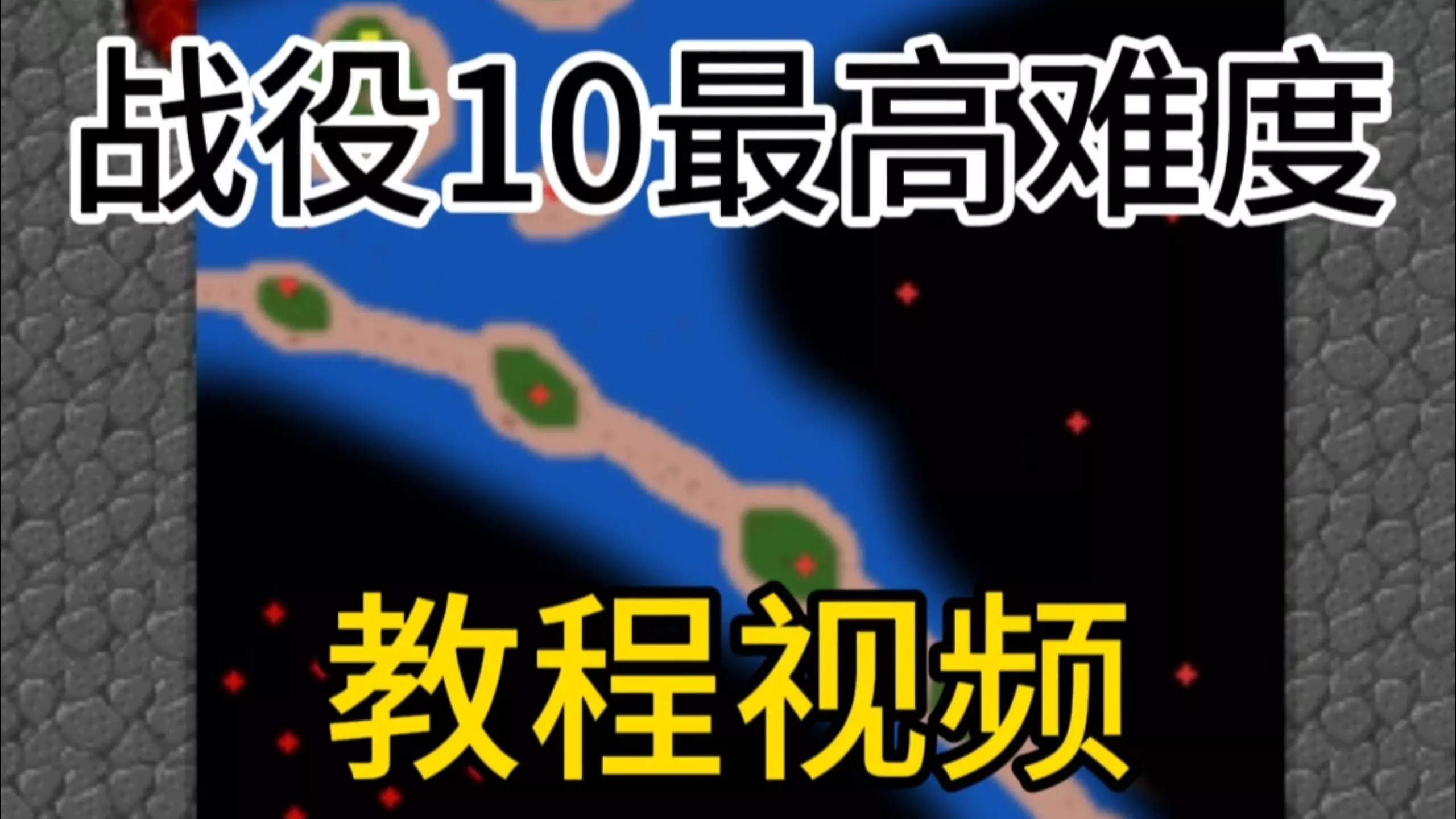 这是《铁锈战争》的游戏通关内容,展示了系统默认开局通关最高难度的遭遇战-抢滩登陆(2p)的过程,画面呈现了占领小岛、建造炮塔、升级基地矿点等通关关键操作。
