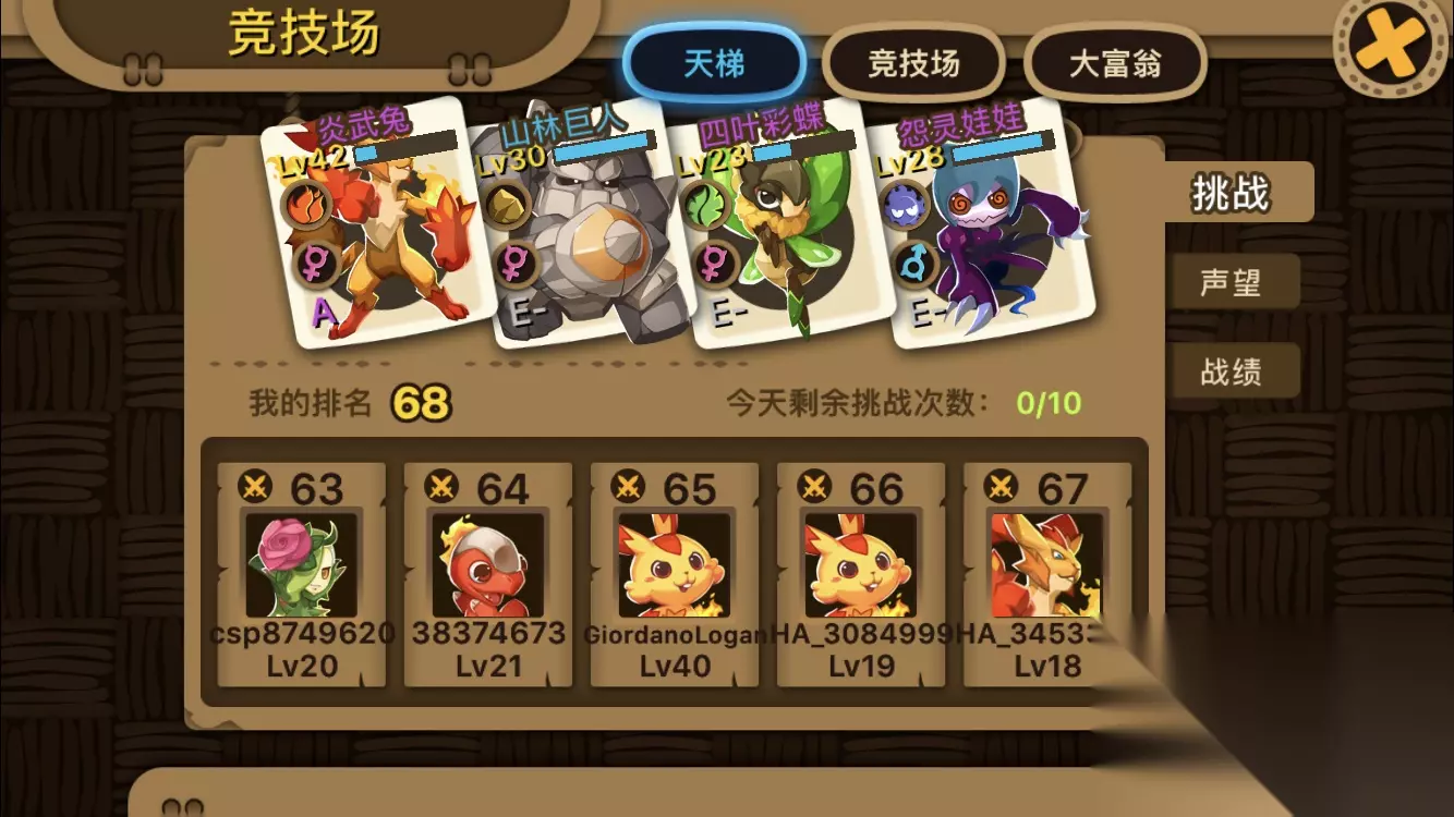 竞技场 目前竞技场比较冷门,只有天梯战可以与玩家切磋,竞技场比赛比较少玩家参与