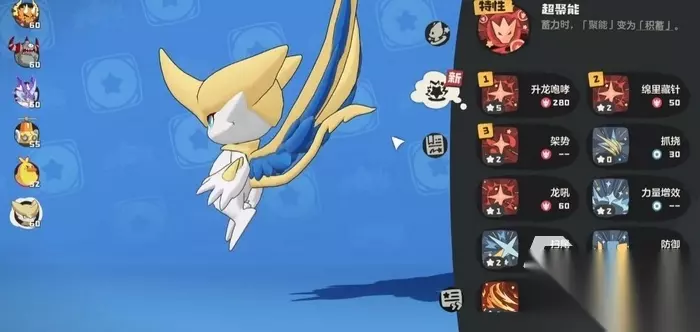超能阿布特性与阿布一致,但有更高的六维属性,特性“超聚能”效果是蓄力的时候聚能会转变为积蓄。阿布通常是在中后段出手,先让它积攒能量,然后打爆发,一般搭配有控场增益、或者补能的精灵,让阿布尽快完成能量积攒,然后打出更高威力的技能。
