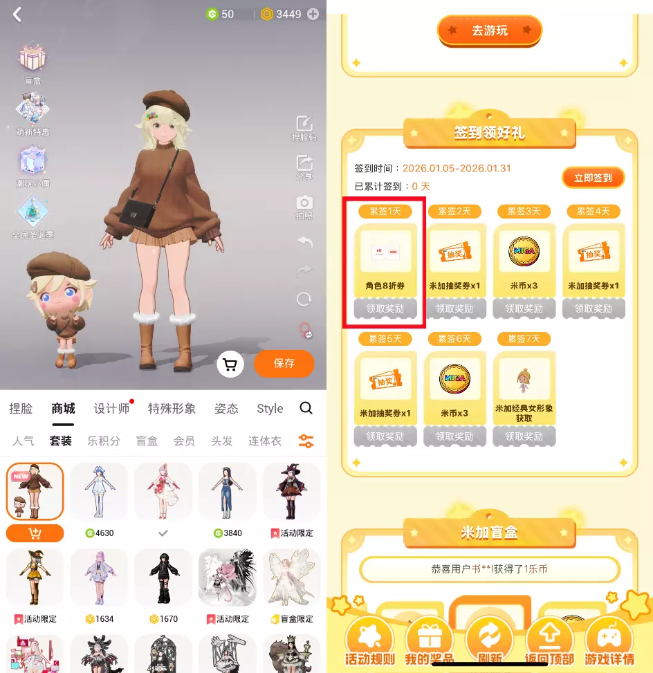 获取方式: 前往界面参与签到活动,免费抱走经典女形象!还有专属优惠券~