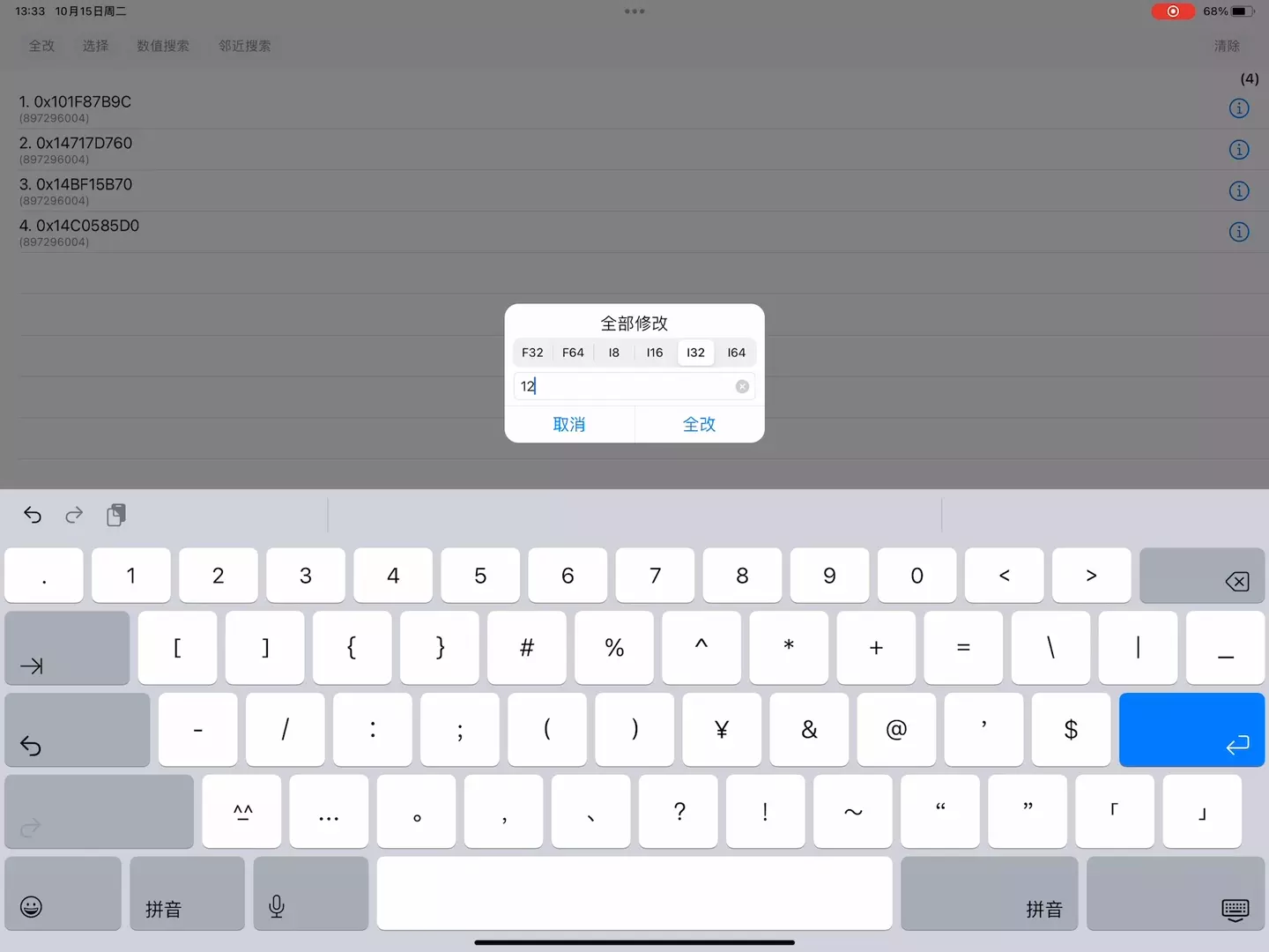 这是微信小游戏《看谁能打过》的CE修改教程,打开CE找到倒数第二个微信进程,以四字节形式搜索对应数值的二倍数,可修改金币、钻石、碎片等,提醒不要改太多,否则游戏会卡。