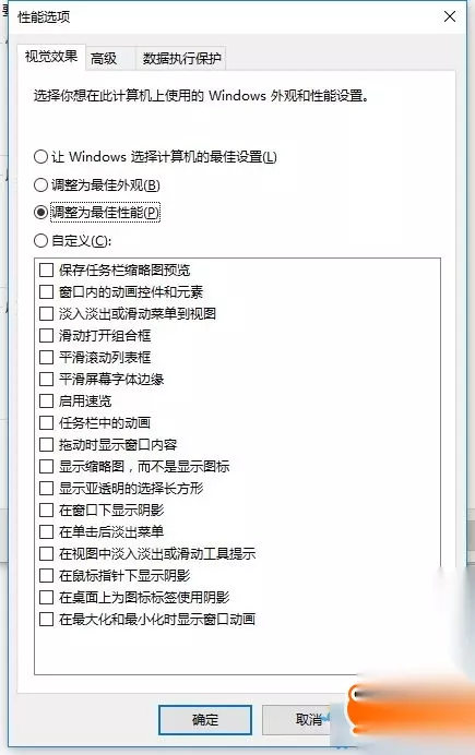 ④桌面特效设置以及悬浮窗问题(窗口模式下) 找到 我的电脑——右击属性——高级系统设置——高级——设置(性能) 如下图,把所有特效都关了