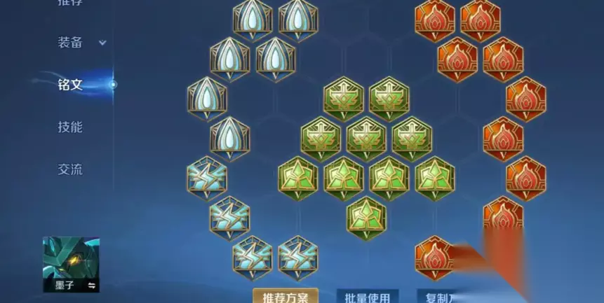 这能让你出门就占优。红色带十个梦魇,绿色带十个心眼,这两个提供法术攻击和穿透,是法师的标配。蓝色铭文可以选择十个狩猎,增加移速和攻速,移速让墨子支援更快,攻速则能帮你更快打出第四次强化普攻的击退效果。如果你觉得缺续航,蓝色带几个贪婪也可以。召唤师技能首选闪现,墨子大招配合闪现改变位置,经常能打出毁天灭地的控制效果。 【小编推荐】专区入口 || 视频站入口 || 体验服申请入口 || 全民竞猜赢好礼 【新英雄爆料】| 司马懿 || 瑶 || 孙策 || 新英雄:囚徒/书圣/瞬 | 【新皮肤爆料】| 李白团战皮肤:敏锐之力new || 诸葛亮团战皮肤:掌控 || 典韦穷奇皮肤 Hot!! | 王者荣耀最新攻略 赛季段位继承表 每日一题 边境突围玩法攻略 体验服爆料