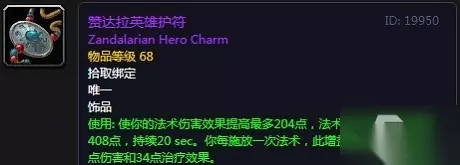 唯一 饰品 法术伤害提高最多204点,法术治疗效果提高最多408点,持续20秒。每施放一次法术,增益效果减少17点伤害和34点治疗(最多12次法术) 适合职业:法师、牧师、术士等法系职业。