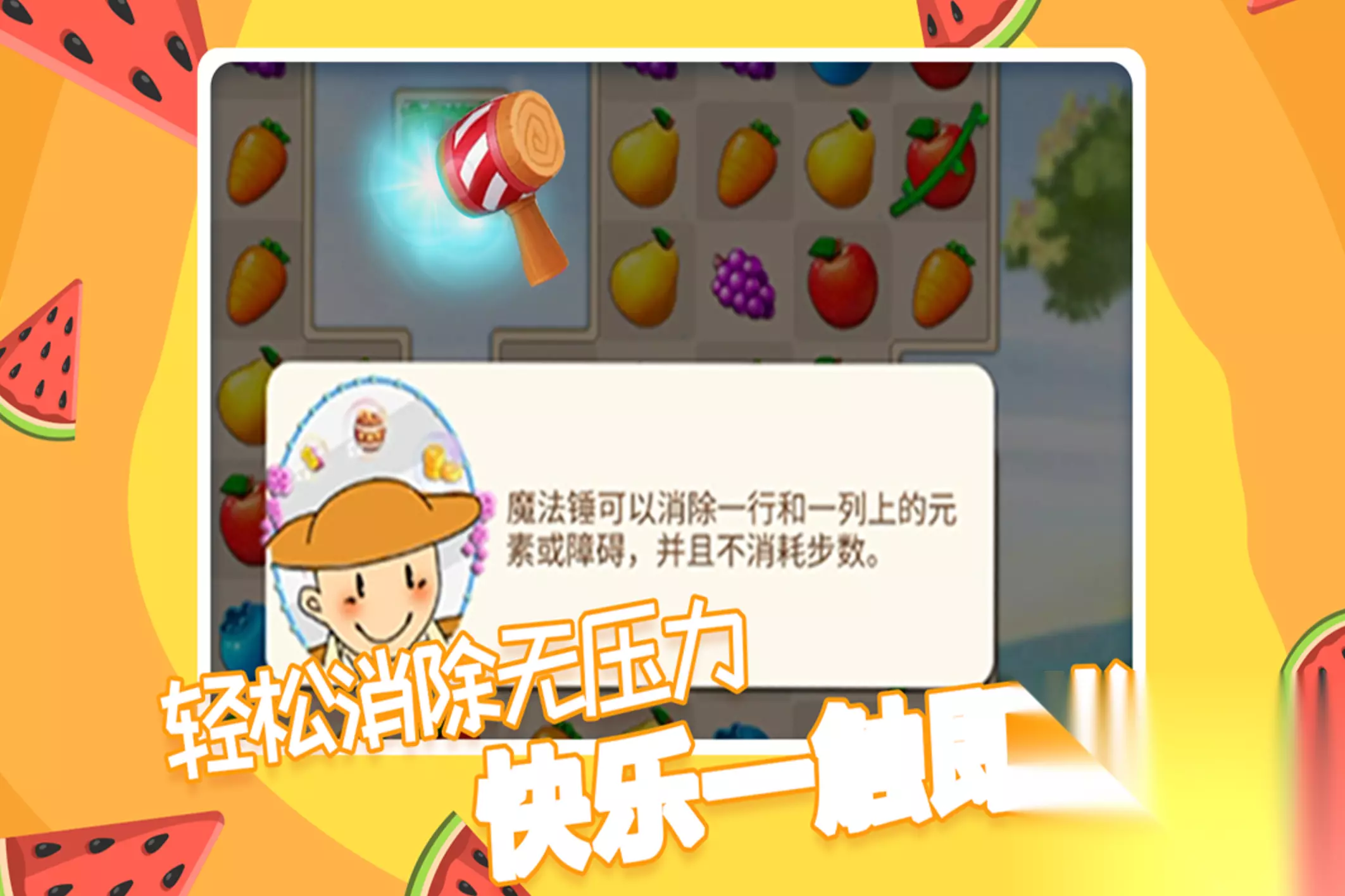 果园主题搭配农夫角色,整体氛围偏向田园风。三消玩法和庄园经营结合在一起,过关拿到的星星,可以用来装修小店,装修完可以解锁卡牌和道具。消除四个以上水果,可以生成特殊道具,直线爆破清掉一整行,水果旋风范围消除,全屏轰炸直接清空棋盘。关卡地形和水果搭配,都不一样,难度慢慢往上爬,后期会加入各种障碍元素。画面是Q版卡通风,多种水果都带点萌感,背景音乐轻松。 手机扫码下载233乐园APP预约 预约订阅最新动态 优先233乐园APP下载 4、《趣味果蔬连连看》
