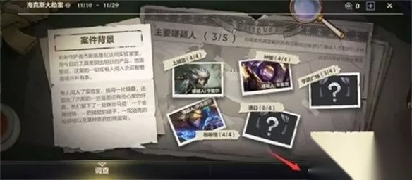 5、最后在调查的界面中点击“解锁”即可获得一个证据,最后集齐所有证据就能找到嫌疑犯。(解锁没有先后顺序)