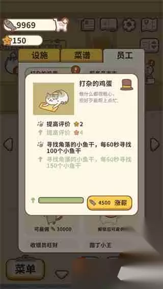 4、点击可以查看员工的技能,比如提高评价、增加收入、打扫卫生等。