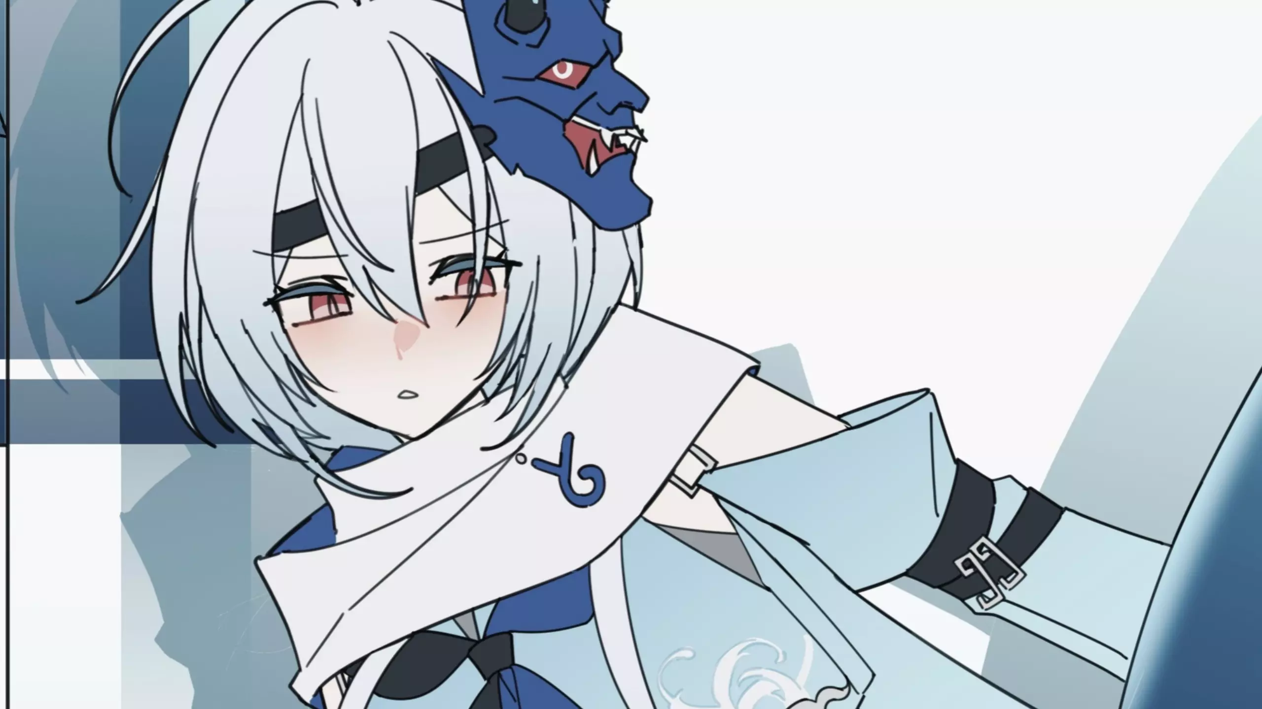 这是一张《火柴人战争3》中角色希拉的同人创作图,图中希拉以白发黄眼的二次元形象呈现,身着蓝黄配色服饰,风格独特。