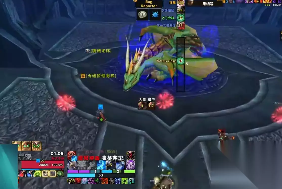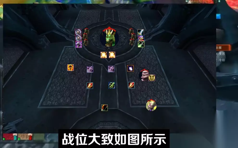 开打之前,大致分一下近战打镇压者的方向,两边各分一半就可以了。战位大致如图所示,安排风中瘸子的猎人、安排进门的治疗,同时呢给带位置的治疗一个标记、安排法师给绿龙保持魔法增效的buff。一行大团,DPS的优先级开打之后团长只需要报场外刷新的怪的位置方向就可以了,剩下的交给他们自己发挥。嗜血根据情况开,观察boss的血量80%以上,或者进门的治疗组有两到三个叠到了30加以上的层数就可以开了。 总结 绿龙这个boss整体难度不高,不过开荒时DPS装备差的话怪容易越刷越多最终崩盘,所以这个boss机制不难,难在队友,打个难度分7.5分,普通团等装备提升上来了多练几把,找找节奏应该也可以轻松碾压