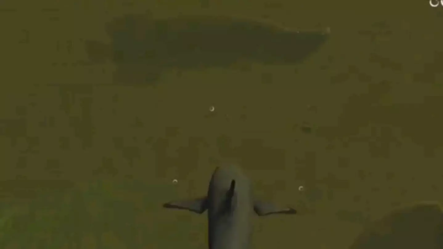 这是《海底大猎杀》的实况解说内容,展示了操控超神海豚在海底场景中探索、战斗的过程,还呈现了海豚的属性面板,能看到其各项战斗相关数值。