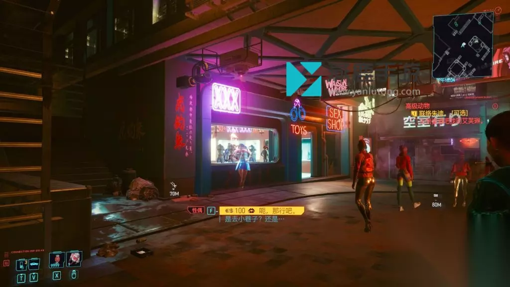点击阅读:博朋克2077攻略>>> 博朋克2077超梦在哪里? 地图位置: 就在性偶店旁边,你可以去樱花市场。