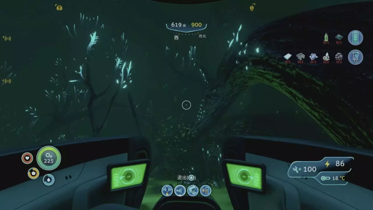 这是生存游戏《深海迷航》移动端的萌新教学内容,呈现了驾驶载具在深海探索的画面,氧气、电量等生存数值清晰显示,不过教学过程出现翻车状况,展现了深海探索的独特体验。