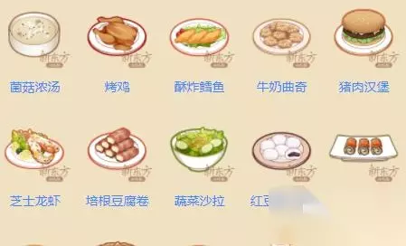 1. 炸薯条:土豆 2.脆皮烤肉:猪五花 3.蔬菜沙拉:生菜+黄瓜+胡萝卜 4.茄子卷:茄子+土豆 5.烟熏三文鱼:三文鱼 6.烤牛肉:牛里脊 7.芝士面包:奶酪+面包 8.菌菇浓汤:蘑菇+香菇+黄油 9.炸米饼:大米+鸡蛋 10.猪肉汉堡:猪里脊+生菜+面包 11.培根豆腐卷:培根+豆腐 12.铁板章鱼:洋葱+章鱼+青椒 13.爆米花:玉米+黄油 14.牛奶曲奇:牛奶+面粉+黄油 15.蔬菜汤:卷心菜+菠菜+淀粉 16.菠萝汁:蜂蜜+菠萝 17.炸苹果圈:面粉+苹果 18.鸡肉披萨:面粉+鸡肉块+奶酪 19.烤鸡:全鸡 20.芒果卷:奶油+面粉+芒果 21.草莓慕斯:奶油+草莓 22.水果沙拉:菠萝+苹果+芒果 23.花生派:面粉+花生+鸡蛋 24.南瓜羹:南瓜+牛奶 25.红豆糯米糍:红豆+牛奶+糯米粉 26.芝士紫薯:奶酪+紫薯 27.酥炸鳕鱼:鸡蛋+面粉+鳕鱼 28. 帝王蟹沙拉:帝王蟹+生菜 29. 芝士龙虾:奶酪+龙虾 30.鳗鱼酥:鳗鱼+鸡蛋+面粉 樱之岛普通菜谱 烤小土豆:土豆 和风烧肉:猪五花 酸甜黄瓜条:黄瓜 白灼生菜:生菜 锡纸蘑菇蒸:蘑菇+黄油 三文鱼刺身:三文鱼 生拌牛肉:鸡蛋+牛肉 什锦厚蛋烧:鸡蛋+胡萝卜+香菇 蛋包饭:大米+鸡蛋 姜汁猪肉:猪里脊+洋葱 培根奶酪小方:培根+面包+奶酪 冷豆腐:豆腐 烤玉米:玉米+奶油 蔬菜天妇罗:茄子+香菇+面粉 章鱼烧:章鱼+面粉+卷心菜 奶油浸菠菜:奶油+菠菜 烤菠萝片:菠萝+蜂蜜 奶油苹果兔:苹果+奶油 照烧鸡肉串:鸡肉块+青椒 炸鸡:面粉+全鸡+鸡蛋 芒果冰沙:芒果+奶油 草莓奶昔:草莓+奶油+牛奶 花生酥:花生+牛奶+面粉 煎鳕鱼排:黄油+淀粉+鳕鱼 烧果子:红豆+鸡蛋+面粉 南瓜茶巾绞:南瓜+蜂蜜+红豆 紫薯团子:紫薯+糯米粉 鳗鱼盖饭:鳗鱼+大米 龙虾刺身:波纹龙虾 帝王蟹刺身:帝王蟹 耀之州普通菜谱 1.清炒土豆丝:土豆 2.红烧肉:猪五花 3.油焖茄子:茄子 4.蚝油生菜:生菜 5.胡萝卜餐包:胡萝卜+面包 6.黄瓜炒蛋:黄瓜+鸡蛋 7.青椒牛柳:青椒+牛里脊 8.炒菌菇:蘑菇+香菇 9.蛋炒饭:大米+鸡蛋 10.三文鱼炒饭:大米+三文鱼+洋葱 11.洋葱炒饭:猪里脊+洋葱+大米 12.什锦培根炒饭:培根+大米+胡萝卜 13.红烧章鱼:章鱼+青椒 14.奶油芝士饭:奶油+奶酪+大米 15.黄油烤馒头:面粉+黄油+鸡蛋 16.翡翠小卷:卷心菜+菠菜 17.玉米烙:玉米+淀粉 18.拔丝苹果:苹果+淀粉 19.菠萝炒饭:菠萝+大米 20.老母鸡汤:全鸡+香菇 21.芒果布丁:芒果+鸡蛋+牛奶 22.草莓雪糕:草莓+奶油+牛奶 23.红豆双皮奶:红豆+牛奶 24.宫保鸡丁:鸡肉块+花生 25.南瓜饼:南瓜+糯米粉+蜂蜜 26.紫薯花馒头:鸡蛋+面粉+紫薯 27.清蒸鳕鱼:鳕鱼+豆腐 28.清蒸鳗鱼:鳗鱼+香菇 29.蒜蓉龙虾:波纹龙虾 30.帝王蟹火锅:豆腐+香菇+帝王蟹 1:失落的菜系中的菜谱无法通过开发获得,只能通过支线任务奖励领取。 2:初始选择的菜系中专属菜谱未做完的情况下,做其他菜系的菜是无法成功的。(比如初始选的耀之州,在耀之州的菜谱未全部解锁的情况下,做格瑞洛和樱之岛的菜是必定失败) 3:错误的材料,必定会开发失败;食物的顺序不影响是否开发成功。