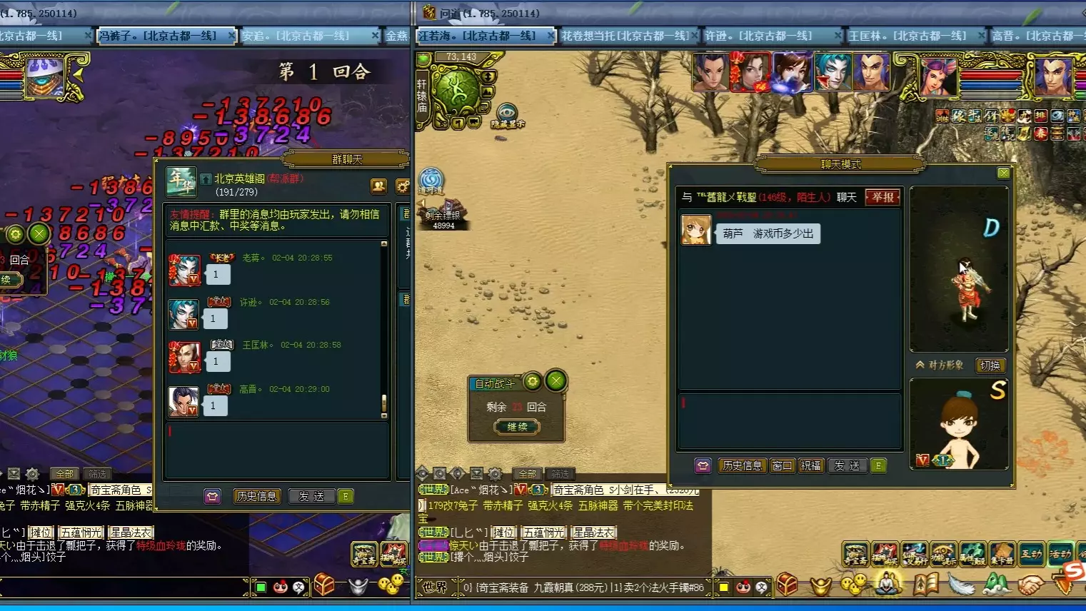 这是《问道》转生区拿云游周天积分的攻略,介绍了180转生系统里的转生副本玩法,通过完成青冥秘闻、诡异画卷等战斗类主线事件,可获取云游周天测试积分,还展示了相关战斗界面与积分获取规则。