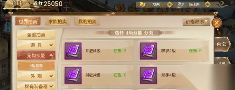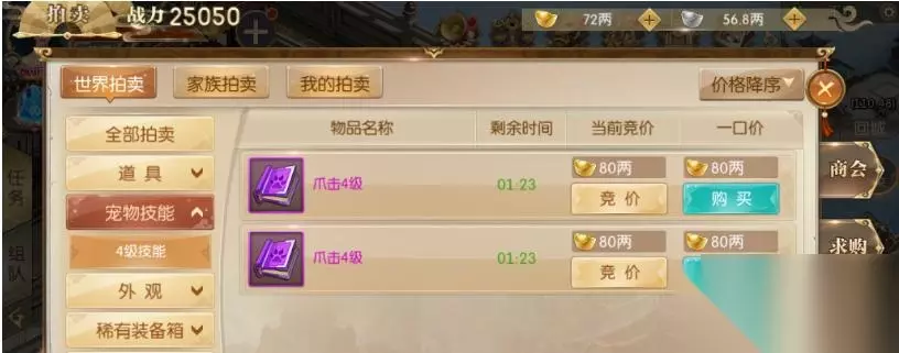 二、拍卖行 拍卖行购买的话比较看运气,一般能上拍卖行的技能书都是高级的,最低都是3级的,4级的偶尔也有,但是价格就需要竞争了,高的吓人。不过对于这类稀有的技能书来说,还是可以接受的。