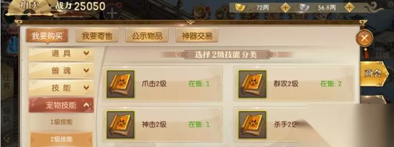 一、商会购买 商会里是可以直接购买技能书的,价格也算是比较公道,一些低级的技能书比如1级2级还是比较多的,3级就基本没有了,由于低级技能书比较多,所以价格也并不是很高。