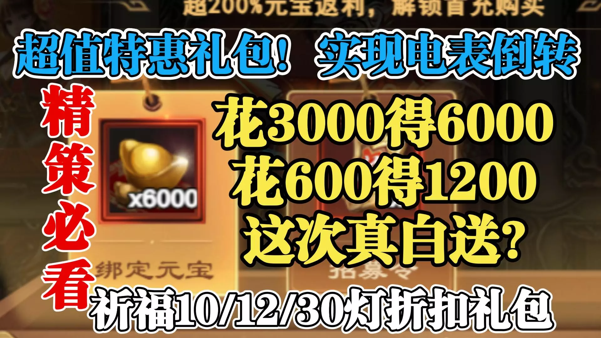 【白嫖精策必看】白送元宝电表倒转!3+3“隐藏”礼包礼盒,你被三国杀区别对待了吗?三国杀OL白嫖精策之元宝特惠礼包,祈福10/12/30灯折扣礼包,皮肤特惠礼包…