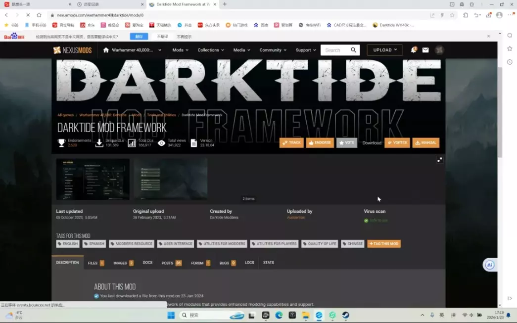 n网:https://www.nexusmods.com/warhammer40kdarktide 下载mod前记得先在n网注册