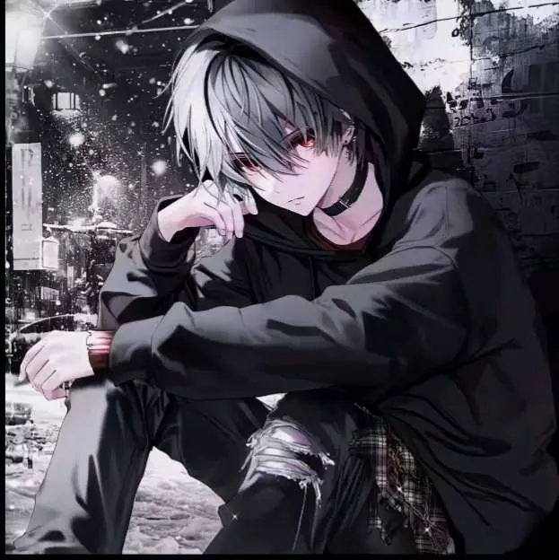 暗巷孤客立于飘雪街头,银灰发丝掩着泛红眼眸,冷冽的气质里揉着化不开的孤寂。