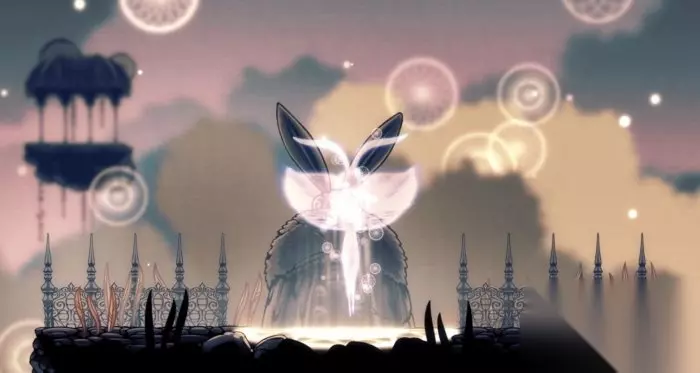 先知的梦境形态 在我们获取2400点梦境精华,先知仿佛看到了希望和奇迹,毫不犹豫地升天了...... 前面说到,梦之钉是通关结局的必须要素,我们必须用梦之钉抽打三个守梦者才能开启黑卵圣殿,而要通关真结局(不再有梦)就必须前往白色宫殿,而前往白色宫殿就必须有觉醒的梦之钉,而觉醒梦之钉则会要我们收集到足够的梦境精华,也就是需要我们挑战梦境boss和收集梦境树的精华。 可以说梦之钉,几乎是把空洞骑士的锁与钥匙更为生动的融入了游戏,也极大了丰富了游戏的内容。换言之它不仅扩展了游戏的内容和故事情节,还在解谜、探索和战斗方面发挥了重要作用,这种有趣的设计使得梦之钉成为游戏中引人入胜的元素之一。