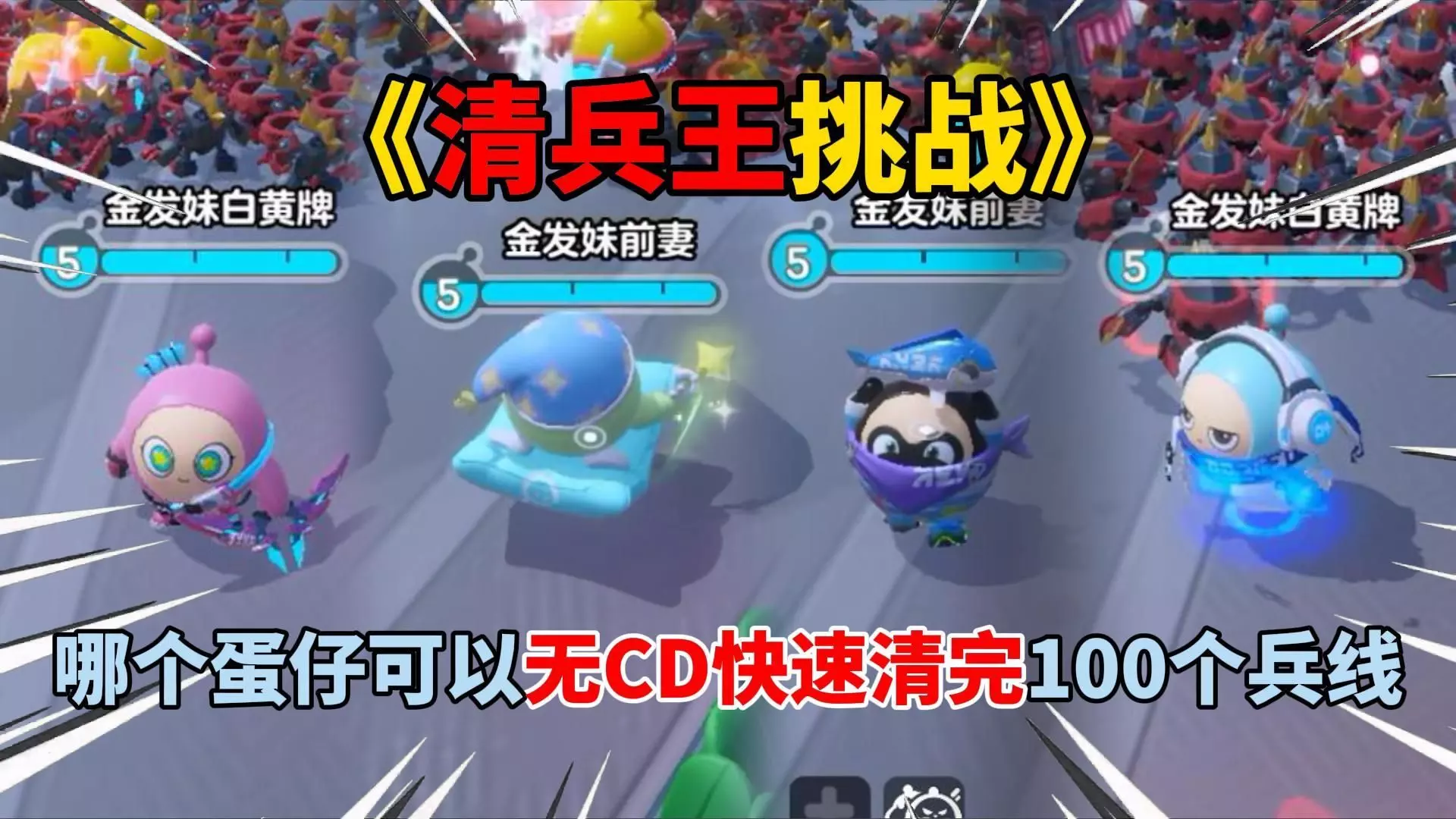 游戏 蛋仔派对:《清兵王挑战》哪个蛋仔可以无CD快速清完100个兵线?