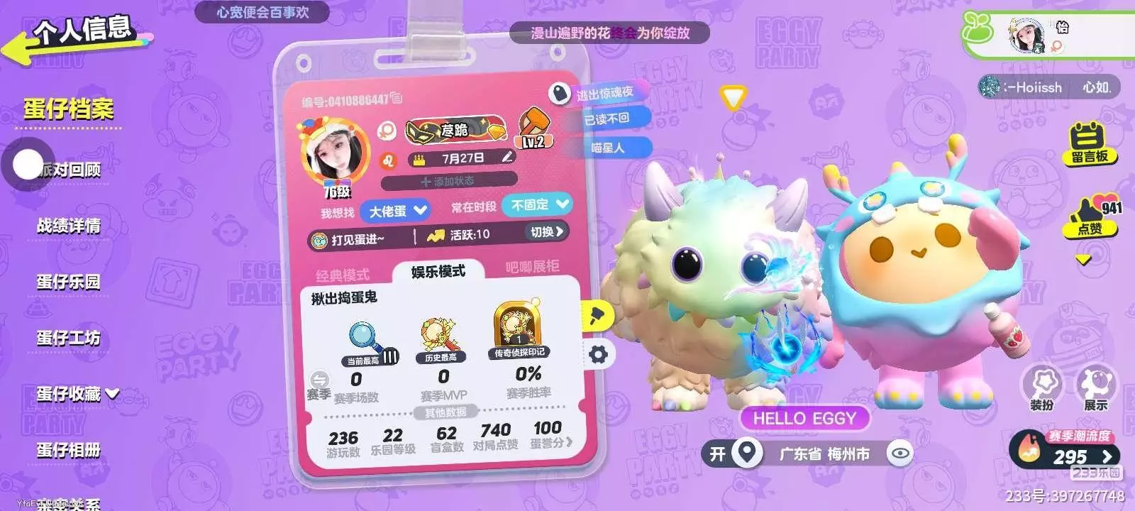 蛋仔主页求点赞送礼物