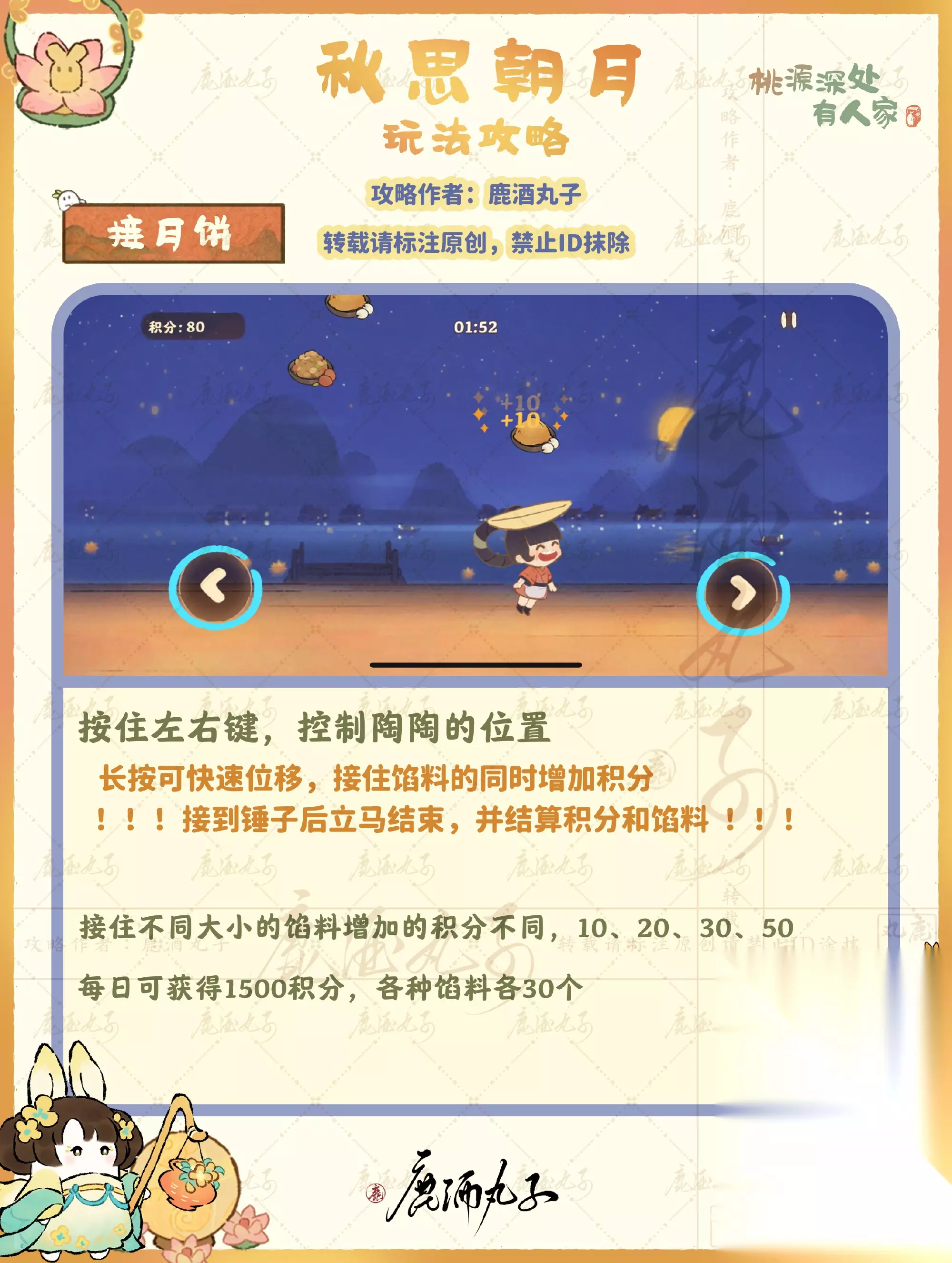 图2、3-接月饼 每日获得1500积分,三种月饼馅各30个 接月饼玩法