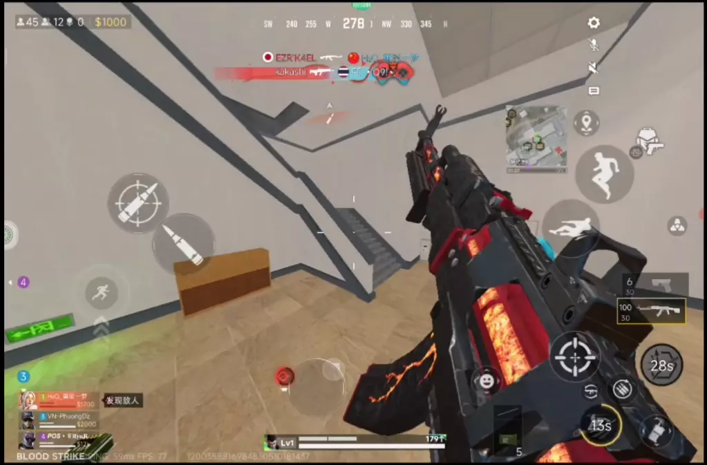 这是手游《未来之役》的实战画面,展示了玩家在对局里依托掩体作战、拾取物资、能量等级提升等游戏过程,呈现了该手游的战场战斗与物资收集等核心玩法。
