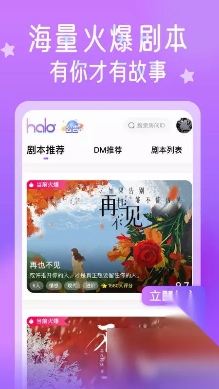 以沉浸式角色扮演与推理机制为核心,构建出逻辑严密,且富有层次感的叙事体验。玩家将扮演不同角色,在限定的信息范围内搜集线索,通过推理还原事件全貌。剧本类型涵盖悬疑、谍战、奇幻等多个题材,每个故事都设有精心设计的伏笔与反转,确保推理过程的严谨性与可玩性。实时语音与文本交流增强互动性,角色的多样设定,使每场推理都充满变数。对抗与合作并存,身份的隐瞒与揭露推动剧情发展,逻辑推演与心理博弈交织。 高速下载 普通下载 4、《HALO剧本杀》
