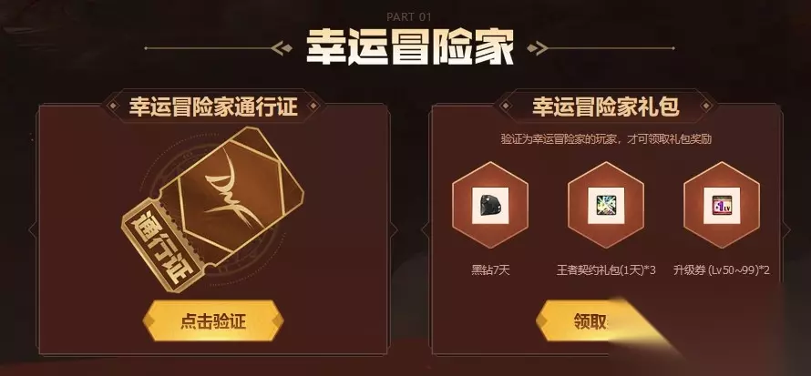 玩家在活动页面中验证幸运冒险家通行证成功后,即可领取一个幸运冒险家礼包。