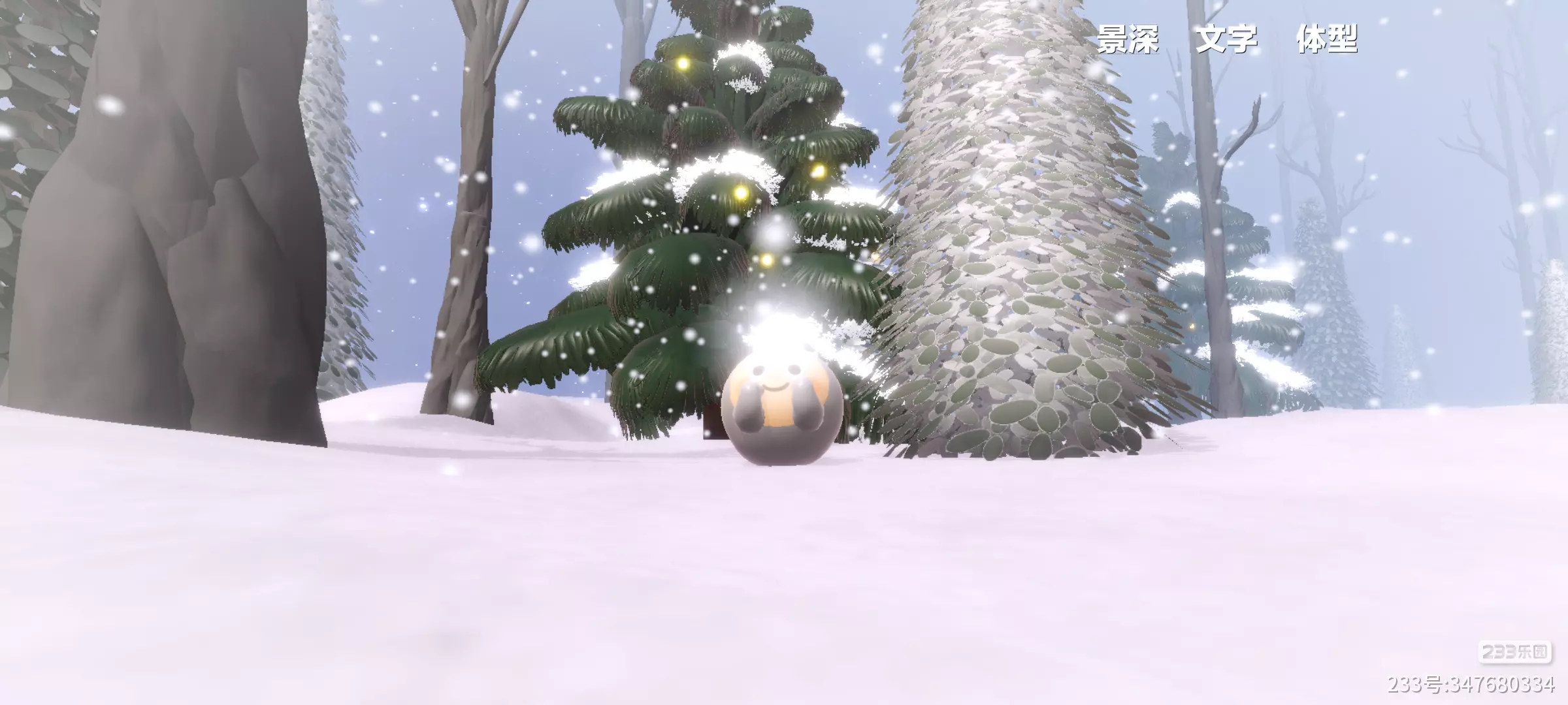 走到冰面区域,会看到一棵发光的圣诞树立在雪地里,脚下的冰面能映出树影和雪花。